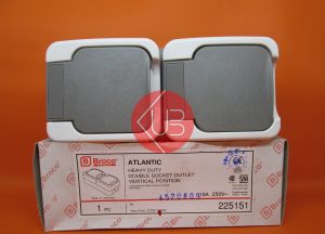 Socket atau Stop kontak 2 gang ( Vertical ) Bangunan Dengan seal karet dan bahan tahan air, aman digunakan pada luar ruangan namun tetap terlindungi dari hujan secara langsung